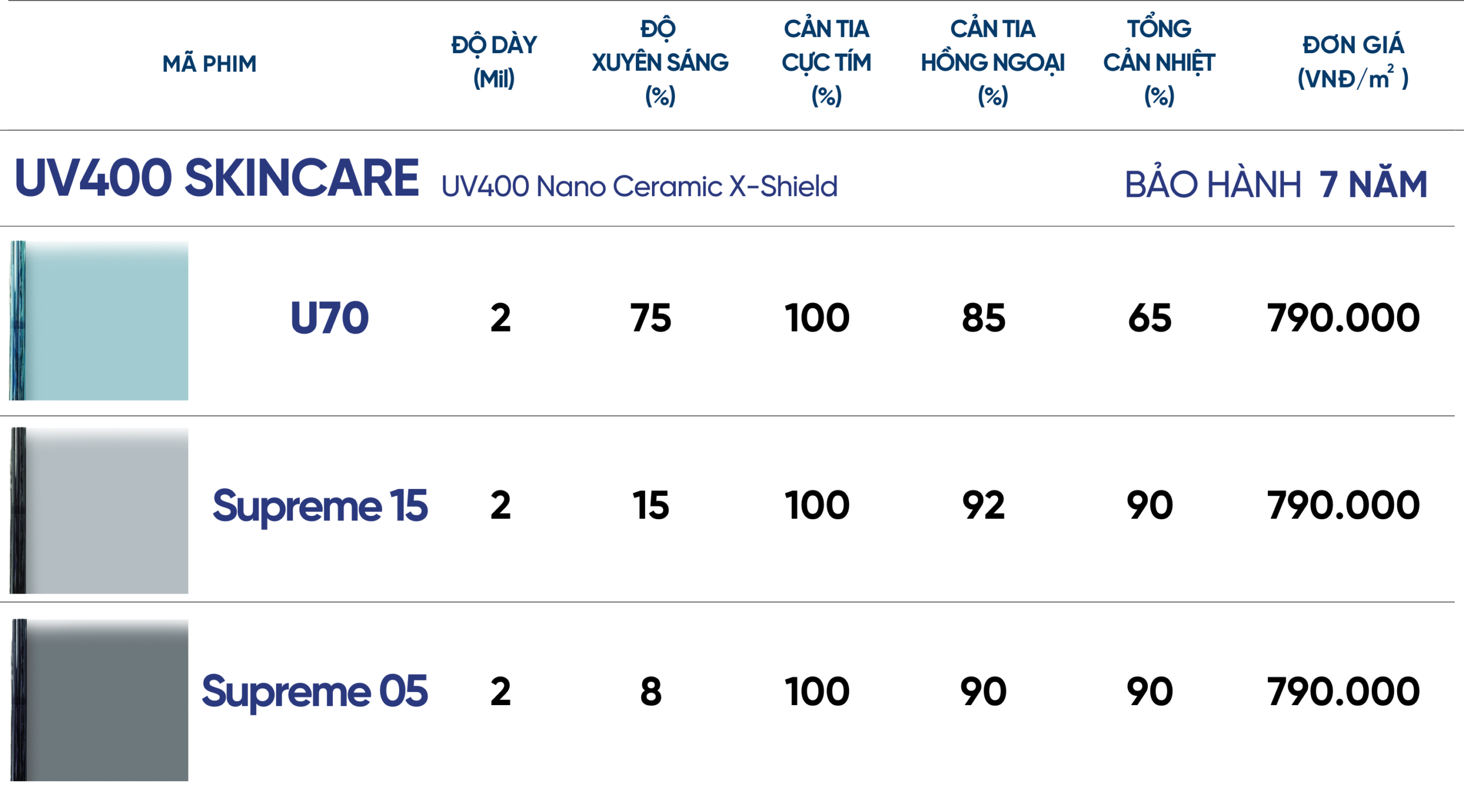 Bảng giá phim cách nhiệt dòng UV400 SKINCARE