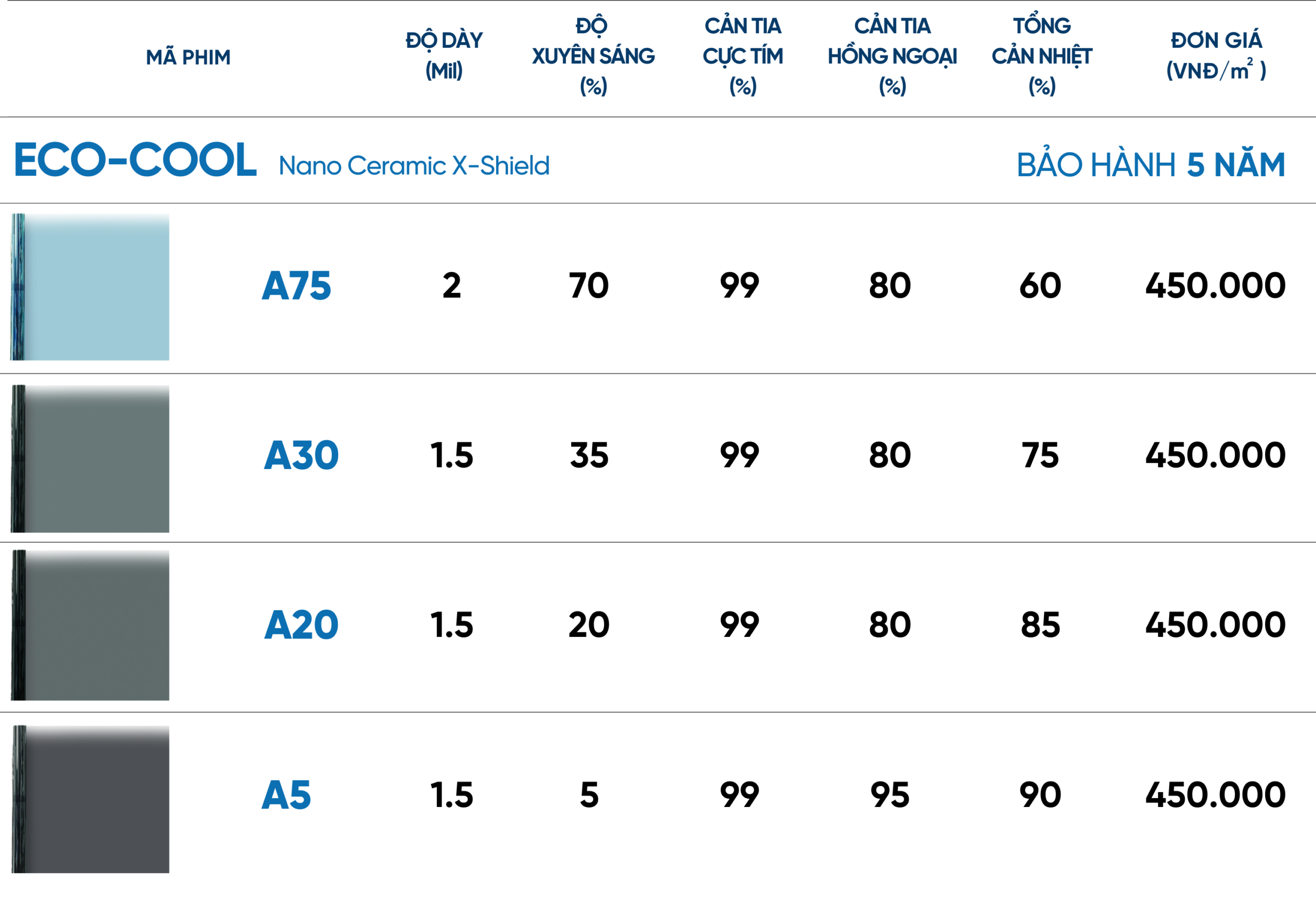 Bảng giá phim cách nhiệt dòng ECO-COOL