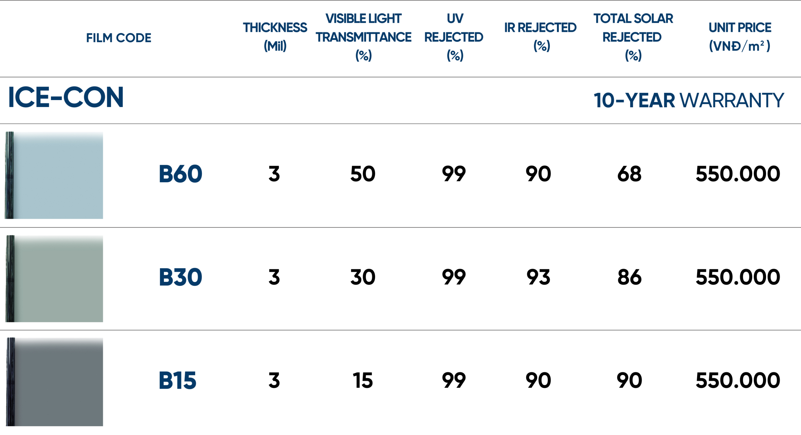 NanoX Ice-Con window insulation film offers a range of tints with light transmittance ratios from 55% to 15%, creating a significant contrast between the light outside and inside. This helps prevent prying eyes, ensures privacy, and enhances the security of your home.