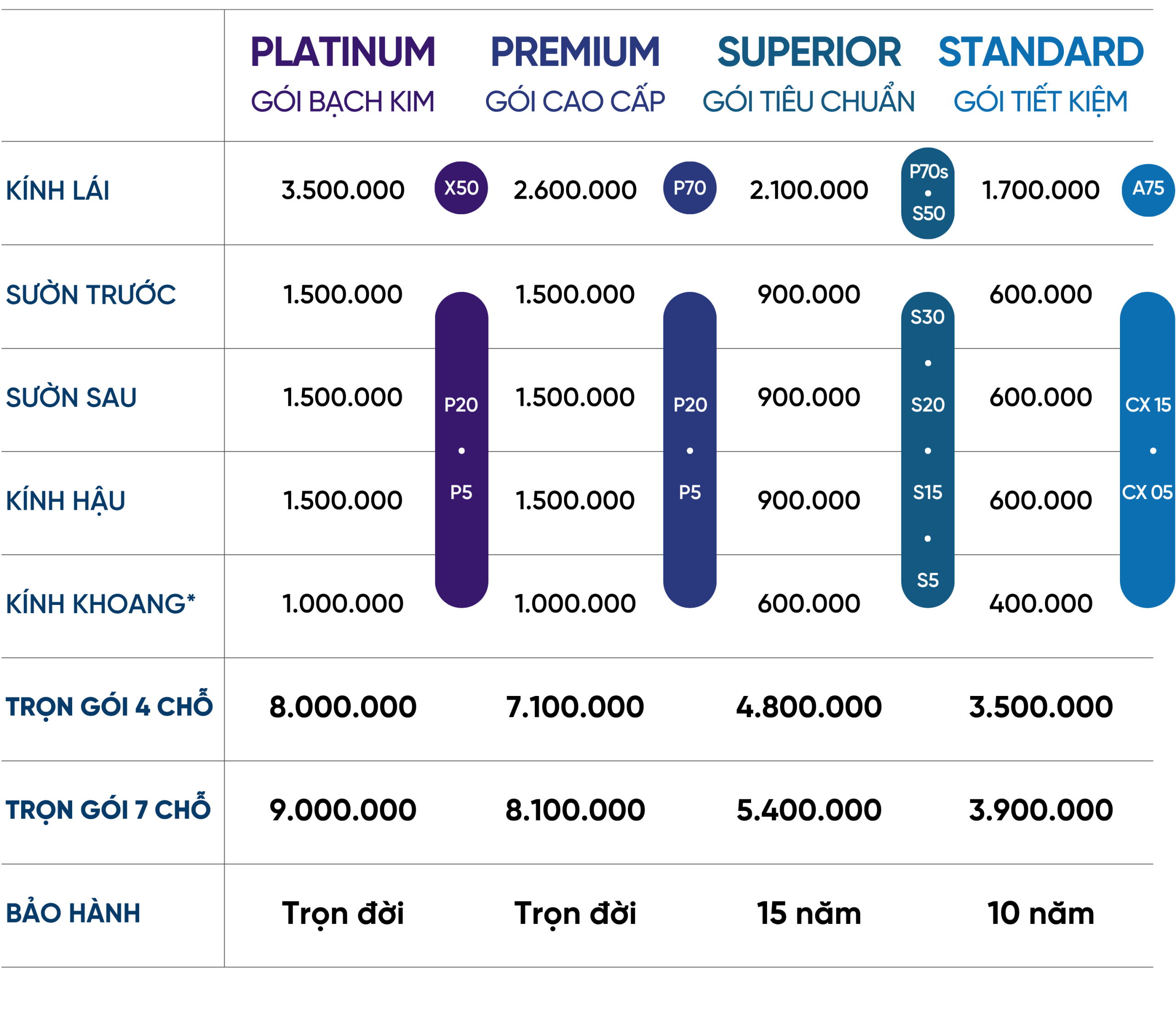 Cho mình xin bảng giá dán xe Toyota sedan 5 chỗ